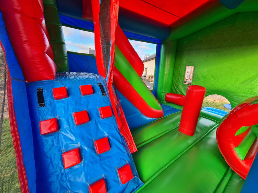 Ideal for younger kids but we have had older kids knock out hours of fun on this one. Once your kid enters the castle they will have a selecting of items to play with, such as, the cylinder squash, boxing pillar, basket ball hoop and slide. They can also just bouncy about if they want.