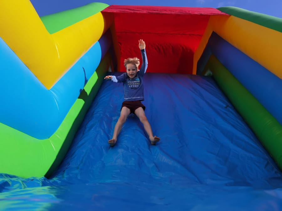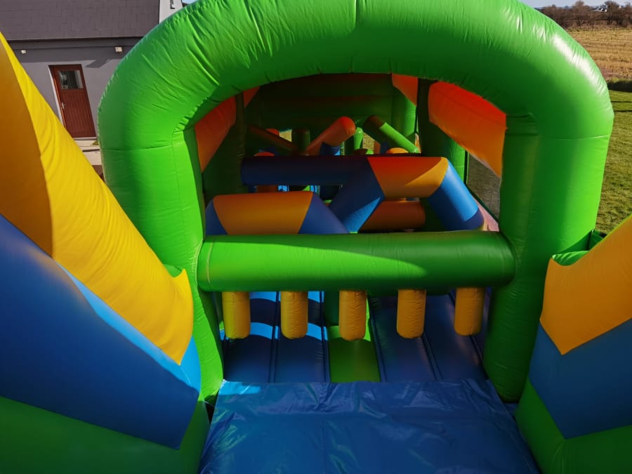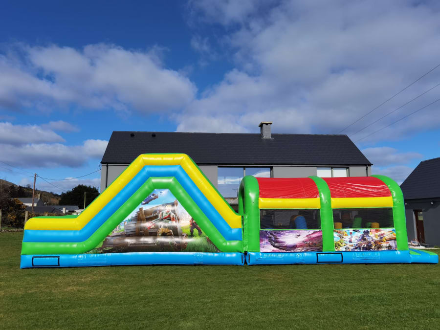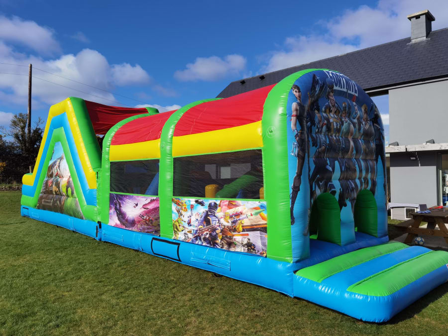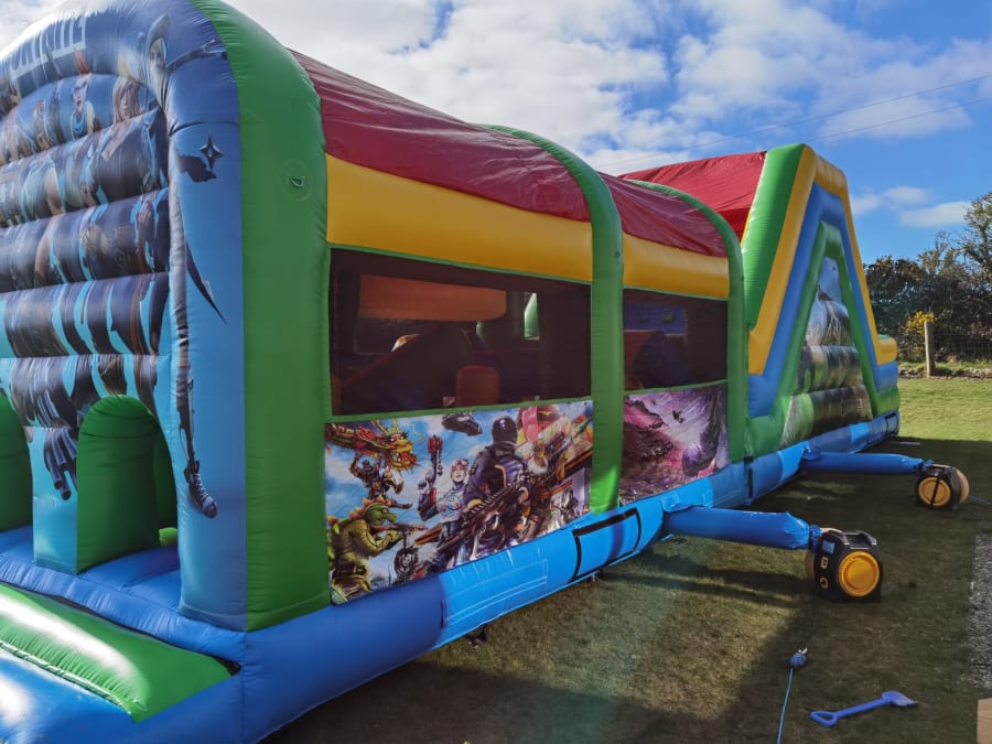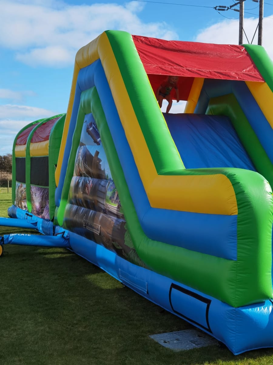 Suitable for 4 - 14 year old's, once they enter the Fortnite assault course they first have to navigate an obstacle coarse before taking on the climb to one of our biggest slides.